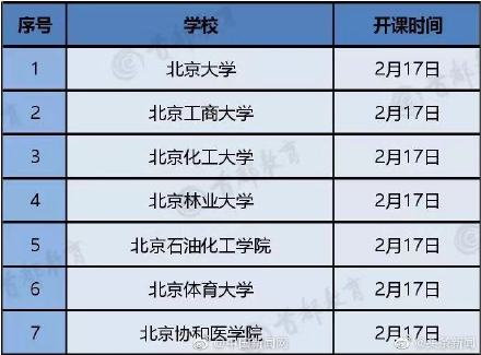 【北京高校线上教学时间,最早17号开课】