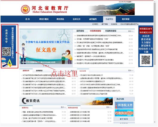 为进一步做好因新冠肺炎疫情推迟开学期间在线教育教学工作,实现“停课不停学”,河北省教育厅建立了河北省基础教育在线教学资源平台,为全省广大中小学生提供优质丰富的在线教育教学资源与服务。平台于2月10日正式开通运行。